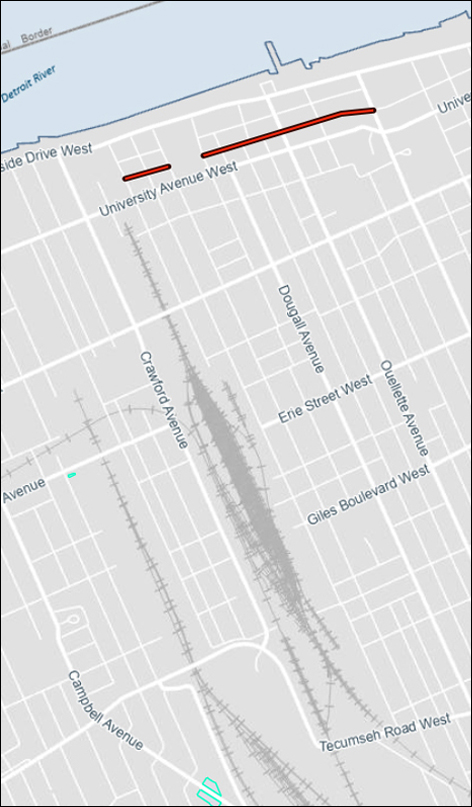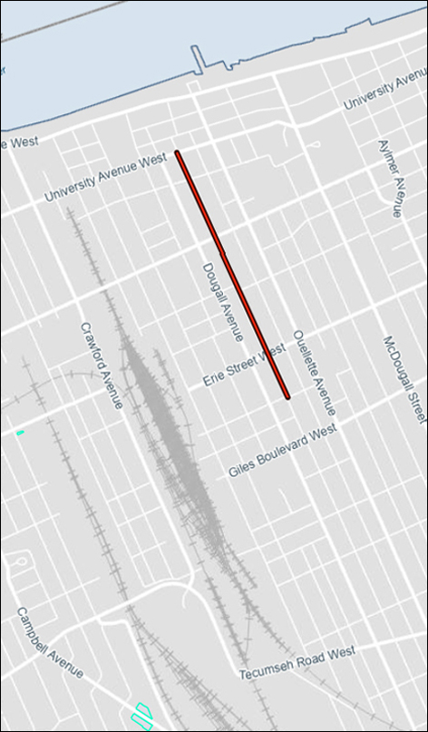 Although the perceived low levels of traffic along one-way roadway corridors such as Pitt Street, Chatham Street, and Victoria Avenue may suggest that a conversion to a two-way traffic operation along such roads may be feasible. A change of this type was found to limit the opportunities for the provision and / or enhancement of infrastructure for other modes of transportation.